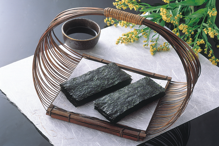 We select the best nori with a rich color and silky sheen. Once toasted, it offers both the perfect crackle at the bite and melt-in-your-mouth softness on the tongue. Our yaki nori has exceptionally good umami no yoin, the quality by which nori releases an intensifying wave of flavor that lingers on the palate even after the nori itself has melted away. Sanpuku nori from the Ariake Sea is the highest quality nori that can be found anywhere in Japan. We continuously monitor our stock and process fresh batches throughout the year to ensure that it reaches consumers at peak freshness.